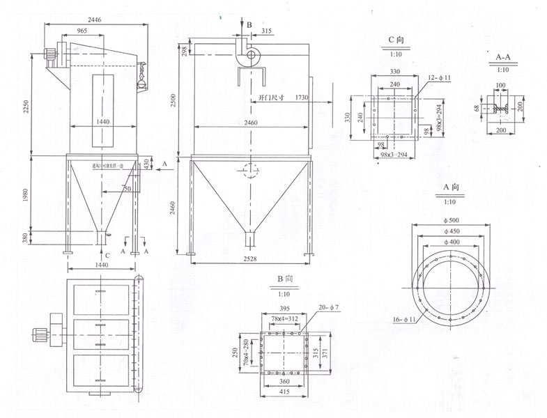 DMC(SD)型脉喷单机袋除尘器是消化吸收国外同类产品先进技术经改进后设计而成的小型袋除尘器。该除尘器采用高压(0.5-0.7MPa)大流量脉冲阀逐条滤袋喷吹清灰的技术,与国内其它单机相比,具有清灰动能大,清灰效率高的特点。并且体积小,重量轻结构简单紧凑、安装容易、维护方方便(外滤式),DMC(SD)型脉喷单机袋除尘器广泛用于建材、冶金、矿山、化工、煤炭、非金属矿超细粉加工等行业,含尘气体净化处理系统,是环保除尘的理想设备。