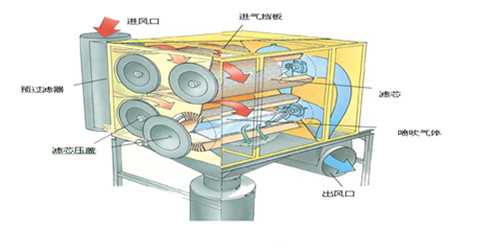 1、滤筒采用进口聚酯纤维作为滤料,把一层亚微米级的超薄纤维粘附在一般滤料上,并且在该粘附层上纤维间的排列非常紧密,极小的筛孔可把大部分亚微米级的尘粒阻挡在滤料表面;